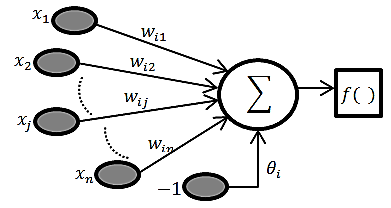 Se va a introducir el denominado modelo estándar de neurona artificial según los principios descritos [6]. Siguiendo dichos principios, la -ésima neurona artificial estándar consiste en: