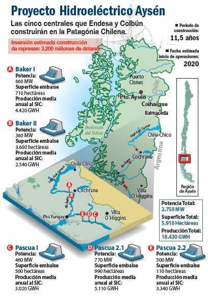 Cuando esté finalizado, Hidroaysén generará unos 2.750 megavatios (MW), equivalentes al 20% de la actual capacidad instalada de Chile (14.000 MW).